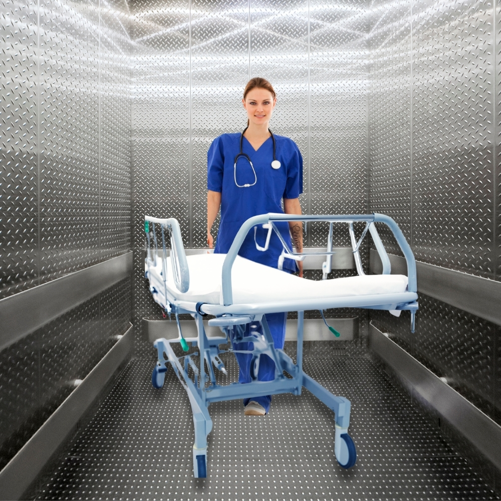 Designed specifically for hospitals and healthcare facilities, ensuring safe, smooth, and spacious transport for patients on stretchers and essential equipment